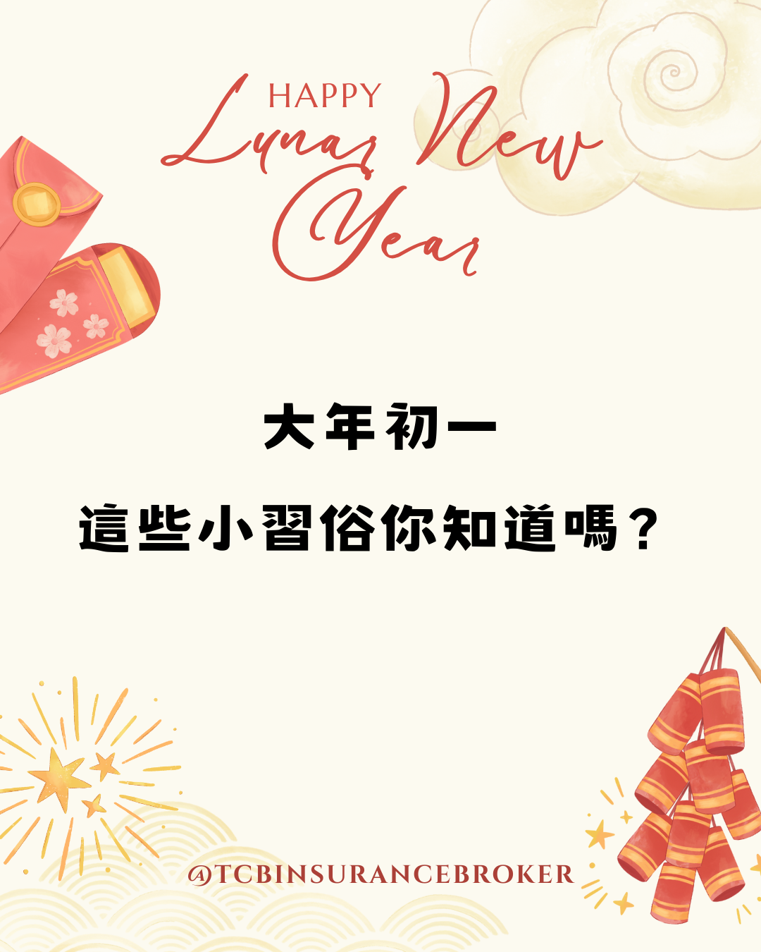 最新消息 LATESTNEWS 首頁 最新消息 26.02 17 2026 馬年快樂~ 最新消息 2026 馬年快樂~~~~ 小編來跟大家拜年啦! 你知道大年初一有哪些習俗小眉角嗎👇 初一可以洗衣服嗎? 初一可以睡到自然醒嗎? 初一可以打掃家裡嗎? 答案都在貼文中… 一起往右看下去 🧧祝大家新春平安、萬事如意 #新年快樂 #大年初一#台中銀保經#銀行保險#台中銀保險經紀人 分享: 前一則 返回列表 下一則